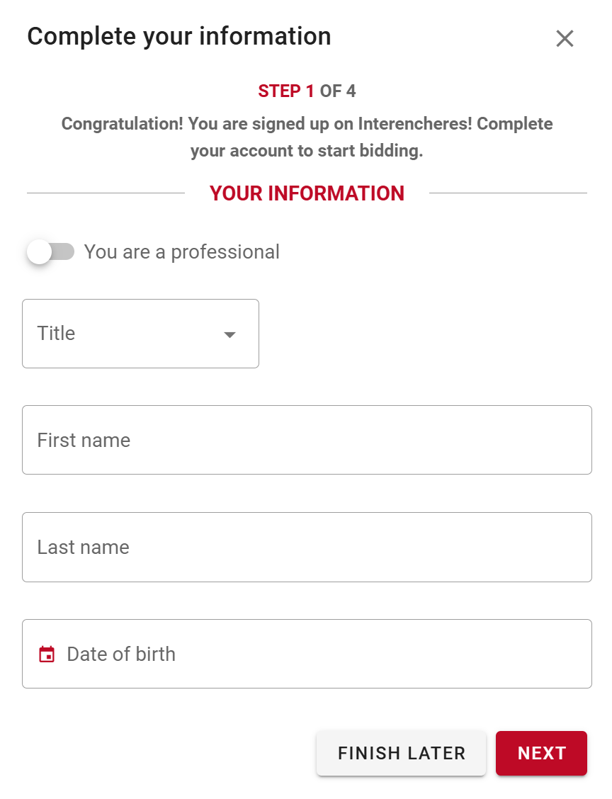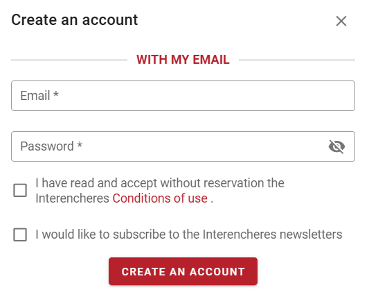 Click on the "Login" button at the top right of our homepage to create an Interencheres account.