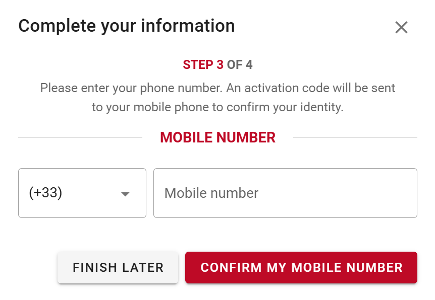 Your mobile number will also be requested. Enter it and click on "Validate my mobile".
