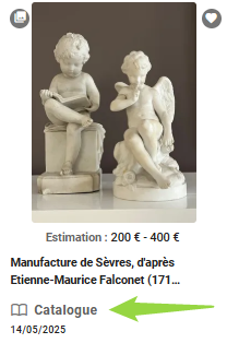 Les ventes CATALOGUE et leurs lots sont repérables sur notre site grâce à l’icône CATALOGUE :