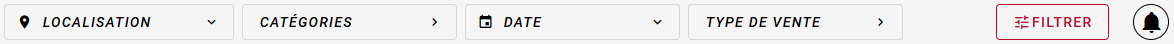 Votre recherche renvoie un certain nombre de lots que vous pouvez filtrer à l'aide des éléments Localisation, Catégories, Date et Type de vente présents en haut de page :