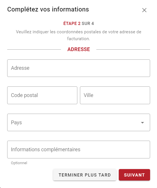 Vous aurez ensuite à remplir les informations demandées : vos noms, prénoms et date de naissance ainsi que votre adresse postale.