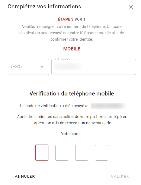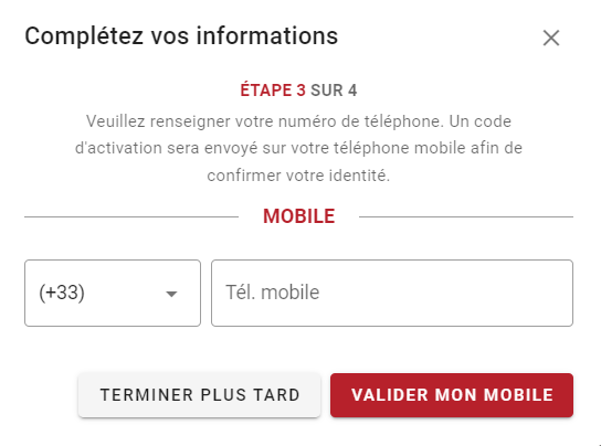 Votre numéro de téléphone portable vous sera également demandé. Indiquez-le puis cliquez sur "Valider mon mobile".