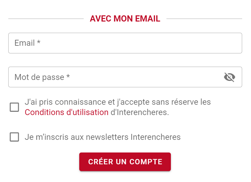 Cliquez sur le bouton "Se connecter", situé en haut à droite de notre page d’accueil, pour créer votre compte sur Interencheres.