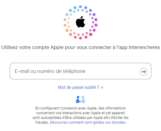 Pour la création via votre compte Facebook, Google ou Apple, suivez les indications à l'écran, pour vous connecter si nécessaire à votre compte personnel (identifiant et mot de passe).