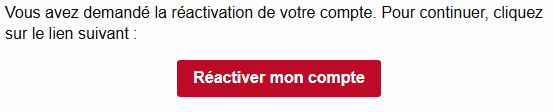Dans l'e-mail reçu, cliquez sur le bouton "Réactiver mon compte" :