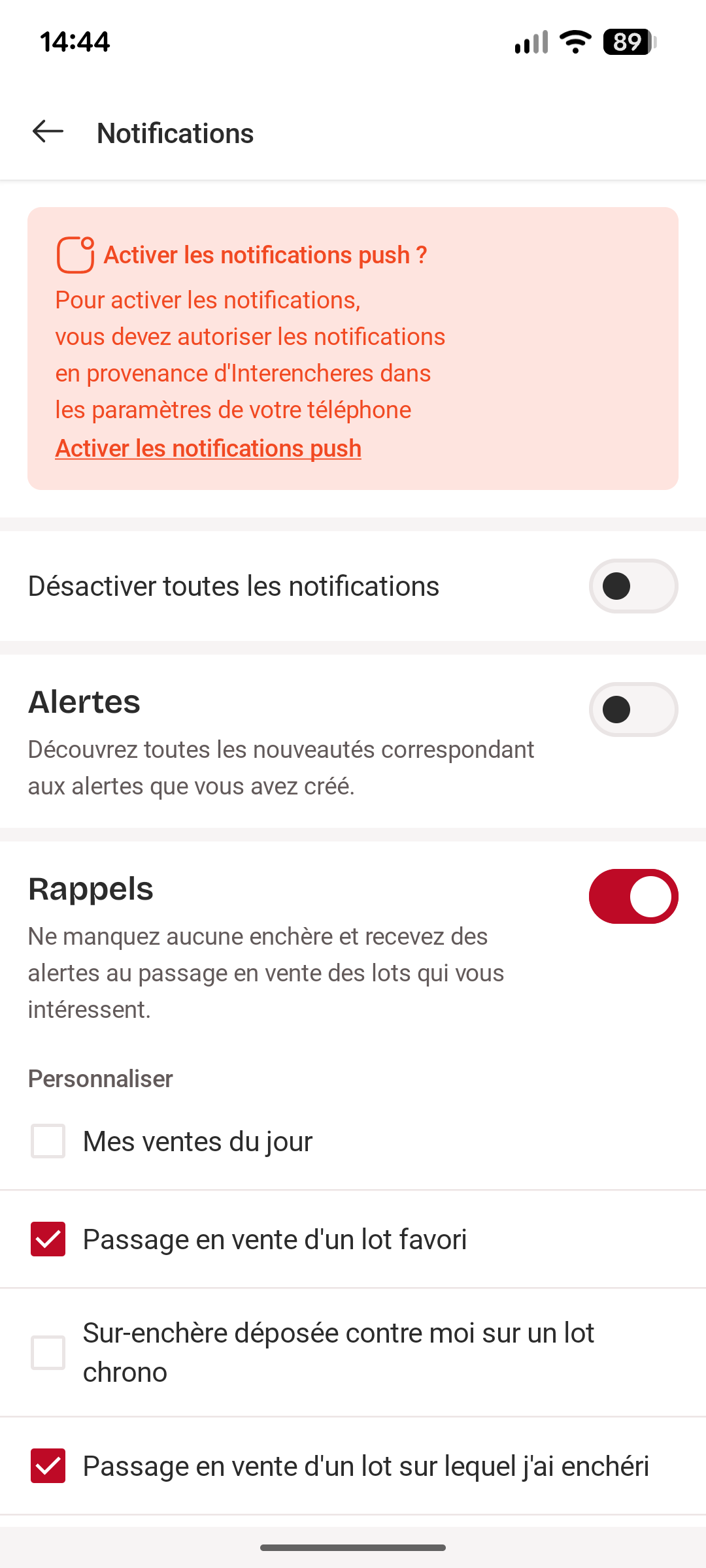 Activez les notifications push et choisissez ensuite celles que vous souhaitez recevoir.