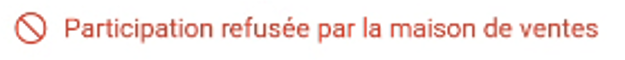 L'inscription ou la participation à une vente peut vous être refusée par la Maison de ventes qui l'organise pour une durée maximale de 36 mois.