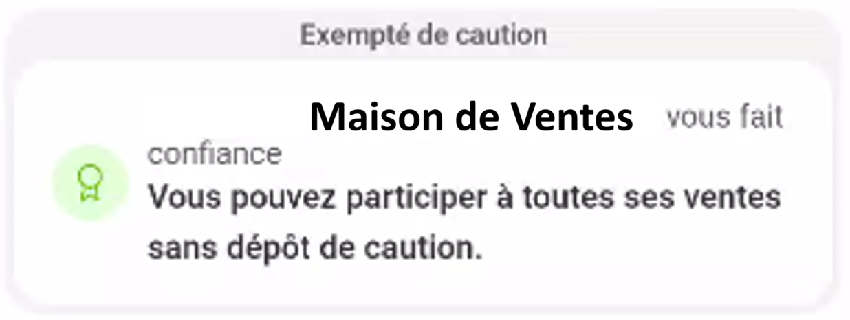 En effet, une Maison de ventes a la possibilité de décider si un utilisateur connu et ayant déjà participé à une de ses ventes sur interencheres peut être exempté du dépôt d'une caution pour participer à ses ventes futures.